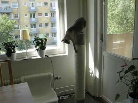 Jag köpte en extra djup hängmatta till katterna på utställningen i Frölunda. Gabriel undersöker den noga. Den ena plattan fick monteras...